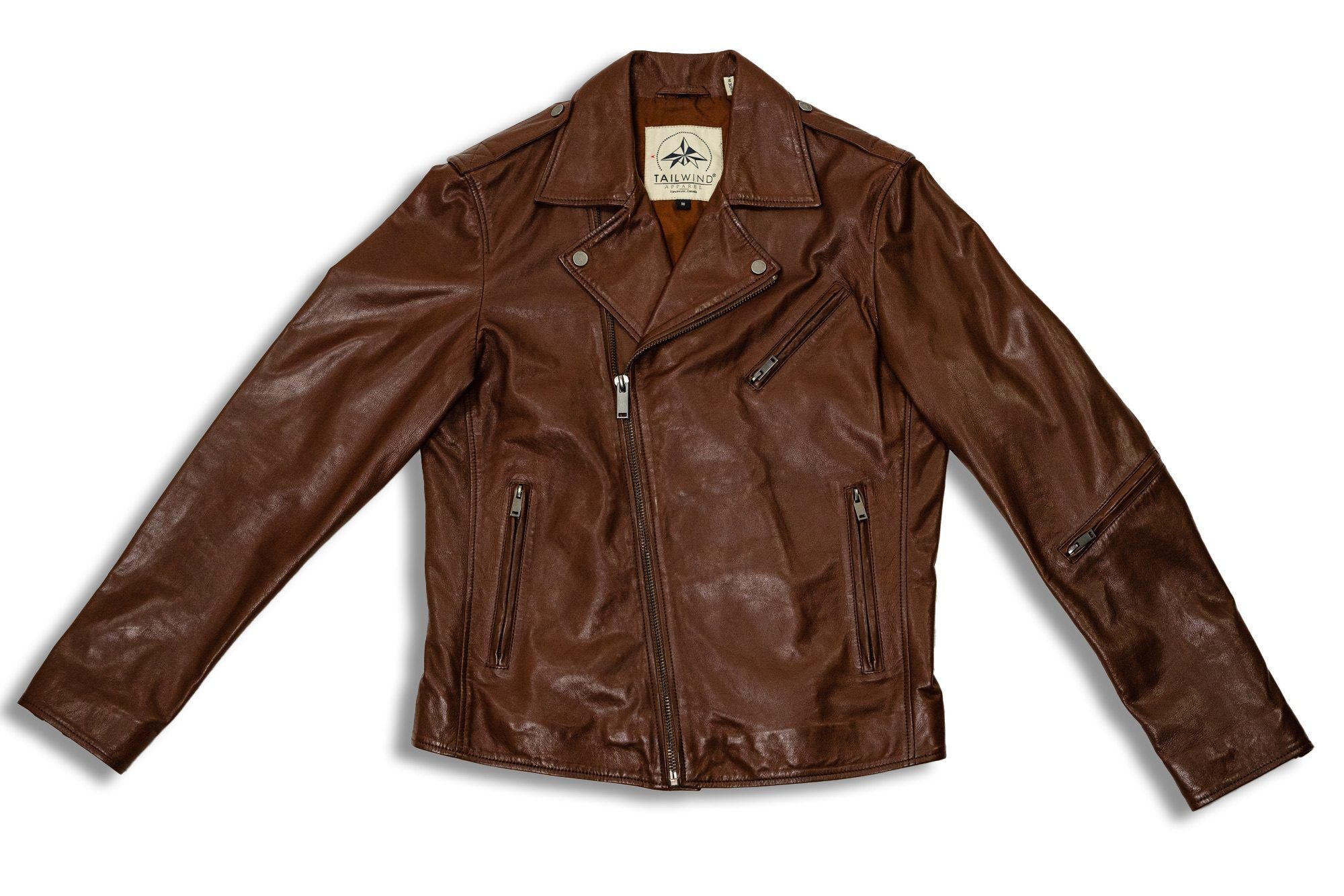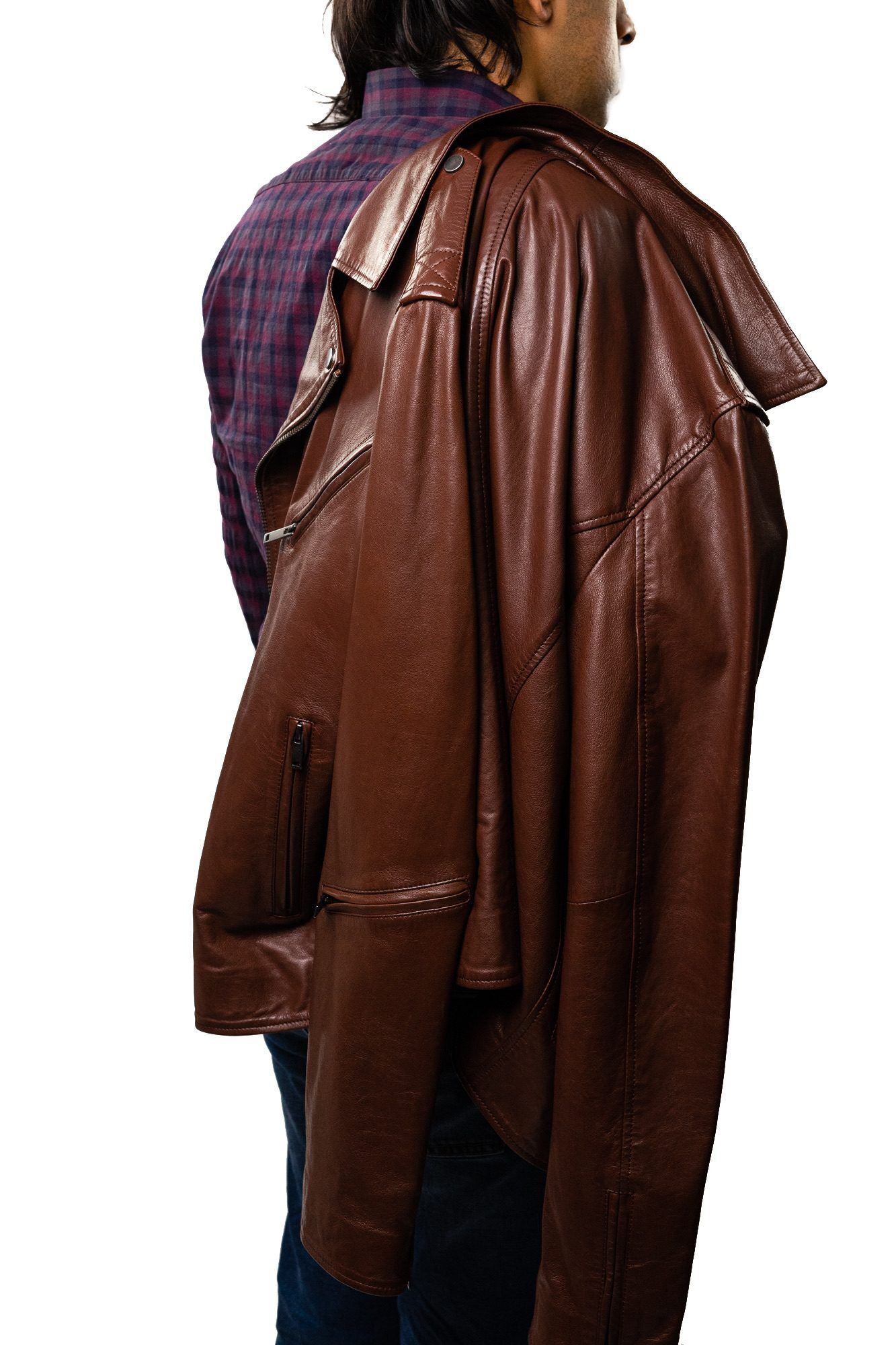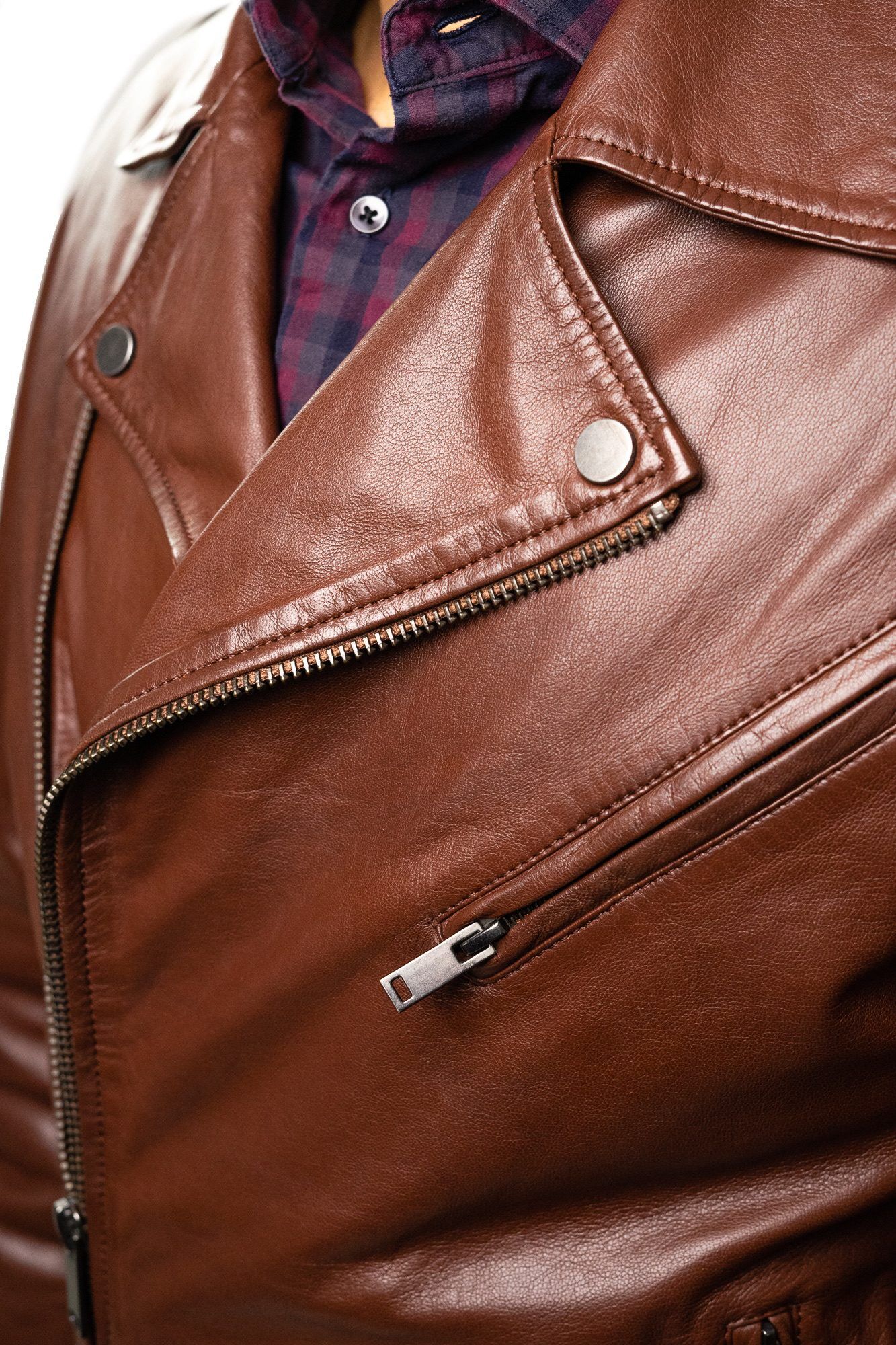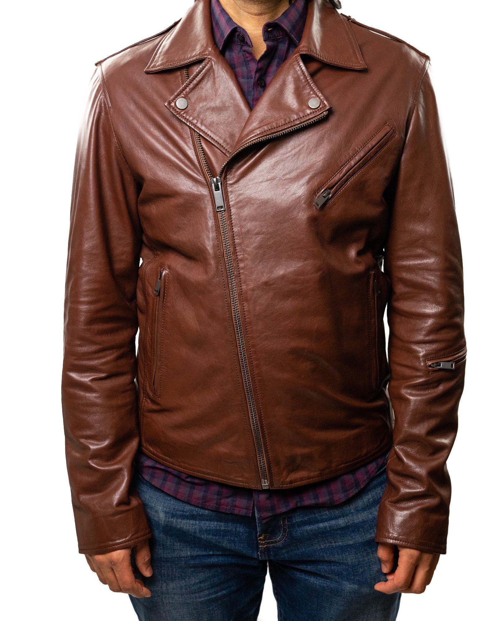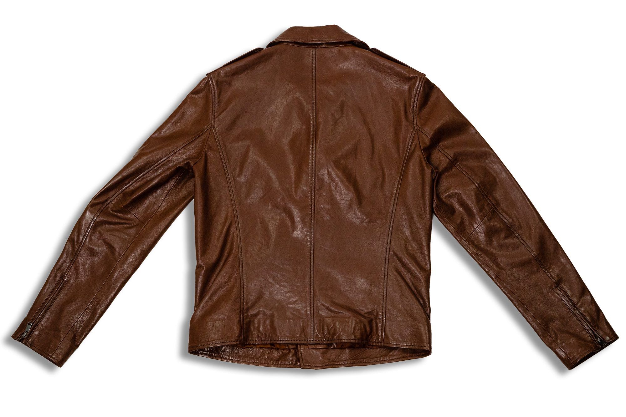 Biker influences blend with quality materials to create something new like this soft sheep leather biker jacket with a glossy sheen, defined by a design with zipper closure and reversible closure. Innovative designs in an interesting and mix of materials, shapes, and functions.